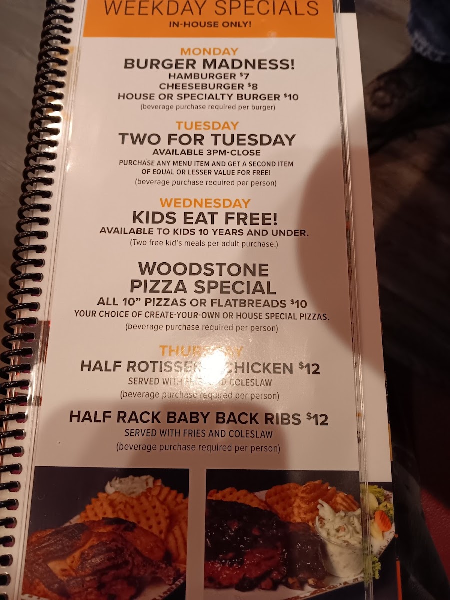 Guests can enjoy everything from flavorful fish & chips and crispy side tater tots to the Wisconsin Harvest Salad with Chicken and the hearty pulled chicken sandwich. The menu also includes creative takes on favorites like Woodstone Nachos and the Ultimate Grilled Cheese with an onion ring basket, adding a playful touch to traditional bites.